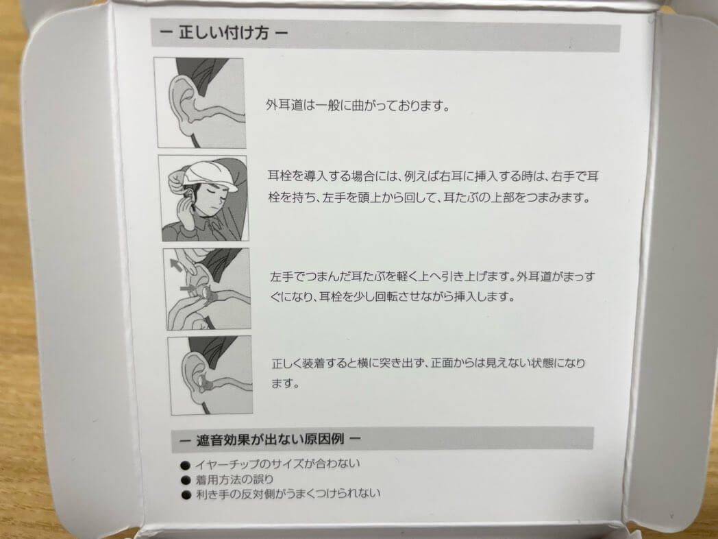 このようにサイズ調整が可能なので、耳穴にフィットし雑音の遮断性が高いのです。